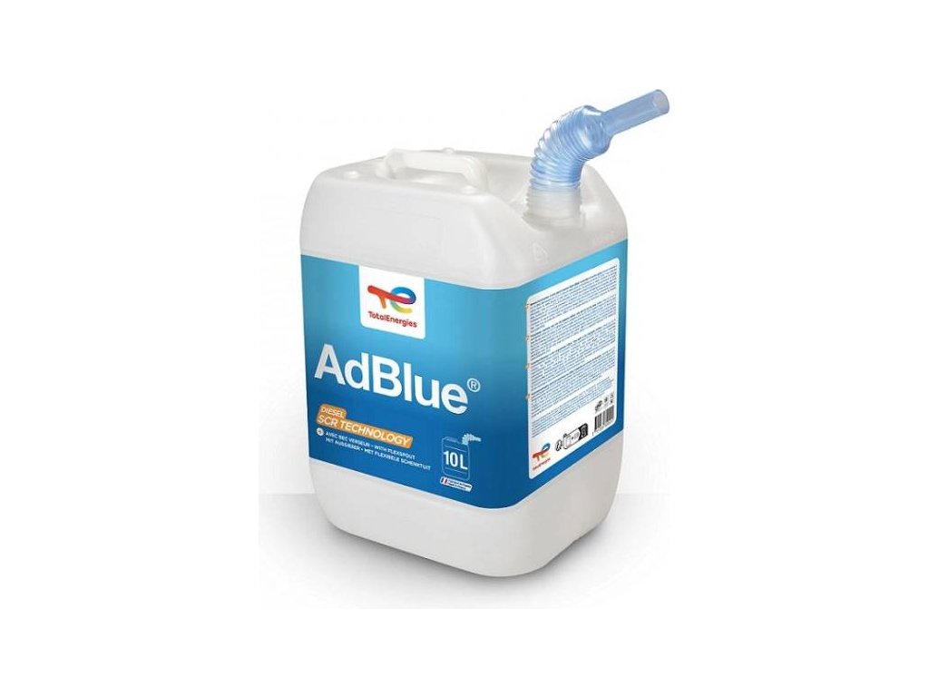 Ad Blue s praktickým balením s hubicou na nalievanie. Ad Blue je netoxický vodný roztok chemicky čistej močoviny používaný na zníženie úrovne oxidov dusíka (NOX) u ťažkých úžitkových vozidiel poháňaných dieselovými motormi. Upravuje spaliny na čistý dusík a vodnú paru. Znižuje množstvo škodlivín vo výfukových plynoch, a preto umožňuje splnenie smernice EURO 4 a EURO 5.
