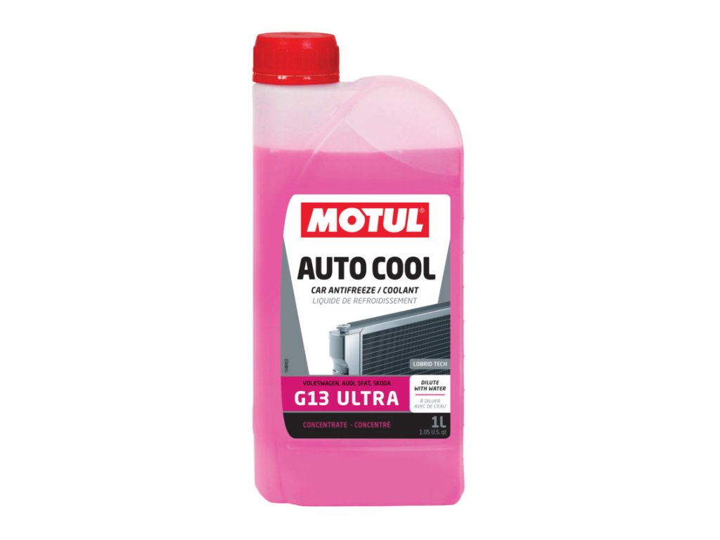 MOTUL AUTO COOL G13 ULTRA je koncentrovaná nemrznúca zmes s dlhou životnosťou, ktorá sa musí zmiešať s mäkkou vodou na okamžité použitie ako chladiaca kvapalina, na báze monoetylénglykolu a glycerolu, pomocou technológie hybridnej organickej / neorganickej zmesi aditív s názvom Lobrid Tech. Odporúča sa najmä pre chladiace systémy skupiny VAG (VOLKSWAGEN, AUDI, ŠKODA a SEAT) osobných automobilov a ľahkých úžitkových vozidiel, kde sa vyžaduje chladiaca kvapalina spĺňajúca požiadavky normy G13.