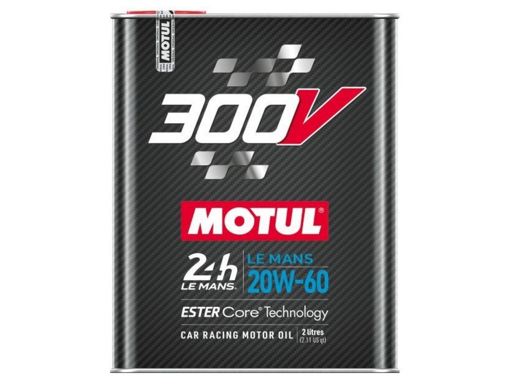 MOTUL 300V LE MANS 20W-60 je 100% syntetický pretekársky motorový olej založený na technológii ESTER Core. Mazivo s dvojitou ester technológiou. Svojou kinematickou viskozitou môže byť použitý aj v bežnej premávke. Vhodný pre všetky pretekárske benzínové alebo naftové motory, preplňované turbodúchadlom alebo atmosférické, vybavené vstrekovaním (priamym/nepriamym) alebo karburátorom. Nad rámec existujúcich štandardov motoršportu. Udržuje neprestrihnuteľný olejový film aj pri maximálnych otáčkach. Mazivo je schopné pohlcovať vysoké množstvo paliva bez zmeny svojich vlastností. Neustále testované pretekárskymi tímami. Pri používaní rešpektujte pokyny tuningovej firmy.