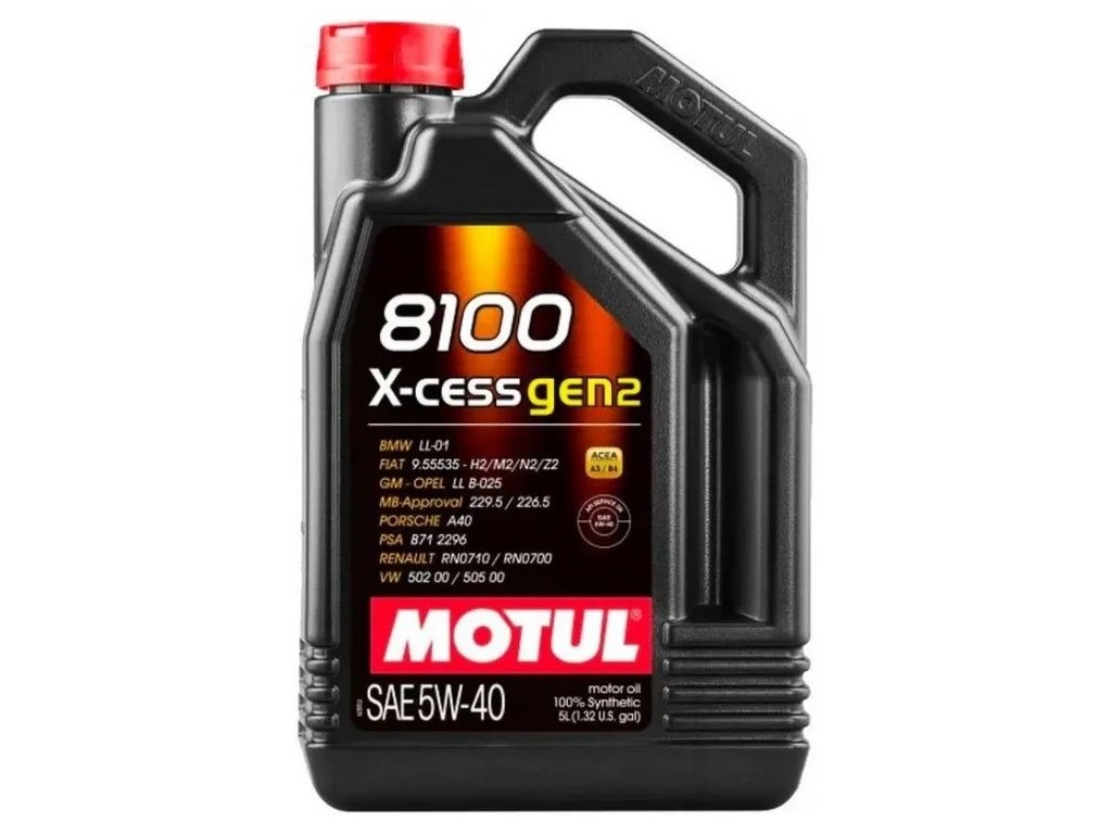 MOTUL 8100 X-CESS 5W-40 je 100% syntetický olej určený pre výkonné automobily a najnovšie modely vozidiel s benzínovými alebo naftovými motormi, s nepriamym alebo priamym vstrekovaním a katalyzátorom. Zlepšuje výkon a odozvu na plyn. Zosilnená ochrana proti opotrebeniu pre dlhšiu životnosť motora. Optimálna ochrana, a to aj pri extrémnych jazdných podmienkach (stop-and-go, diaľnice). Dlhšie intervaly medzi výmenami oleja.