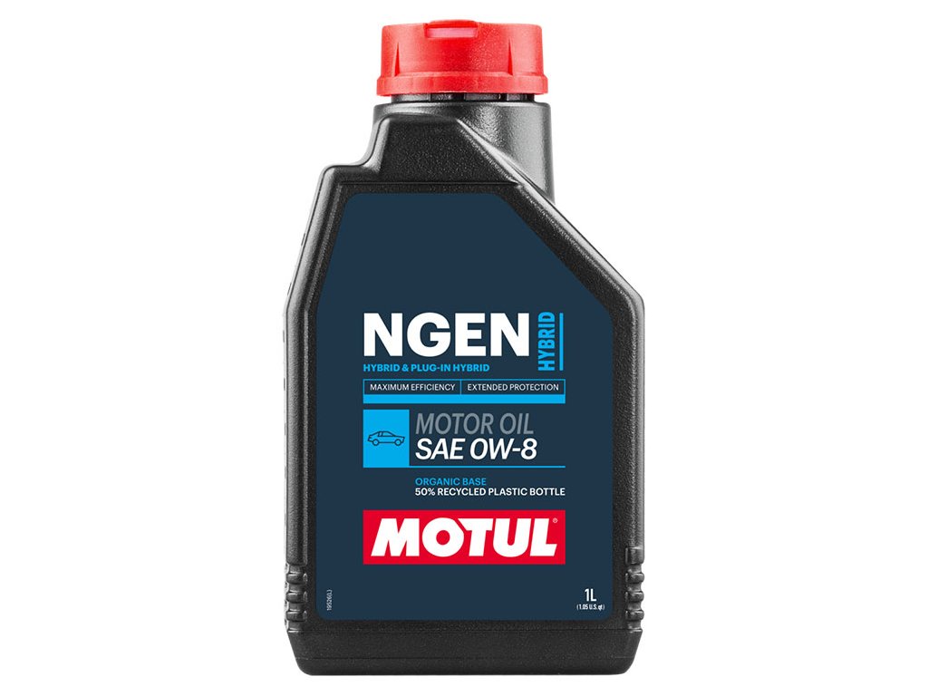 MOTUL HYBRID 0W-8 100% syntetické mazivo pre spaľovacie motory. Špeciálne navrhnuté pre hybridné (HEV) a plug-in hybridné (PHEV) vozidlá vybavené zážihovými motormi, u ktorých výrobca požaduje stupeň viskozity SAE 0W-8 (pozri návod na používanie).